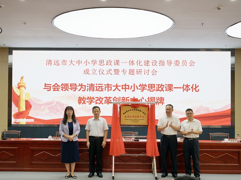 与会领导、专家共同为清远市大中小学思政课一体化教学改革创新中心揭牌