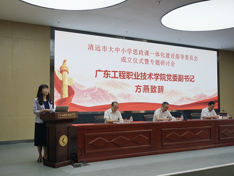 “我校进驻省职教城之后,在思政课区域集体备课、结对育人等工作上持续发力,清远市大中小学思政课一体化教学改革创新中心在我校挂牌成立,这既我校主动融入清远教育事业以及助力清远经济社会发展的积极行动,也是我们贯彻践行习近平总书记关于办好思政课的重要论述和重要指示精神,落实广东省教育厅《统筹推进大中小学思想政治理论课一体化建设的工作措施(试行)》文件精神,组建创新联合体,统筹推进大中小学思政课一体化建设,落实立德树人根本任务,自觉履行为党育人、为国育才的光荣使命的一项重大举措。”广东工程职业技术学院党委副书记方燕在成立仪式上讲到。