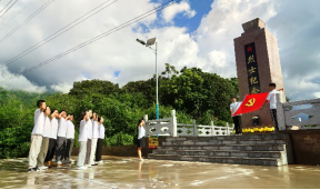 “三河坝群峰对峙,地势险峻,是水陆交通要冲,历来为兵家必争之地。南昌起义军曾在朱德的率领下在这里与国民党钱大钧部激战了三昼夜,许多战士牺牲在这里。”饶洋镇老党员刘汤明向学校志愿服务队讲述三河坝战役历史、赠送红色书籍《茂芝会议红色记忆》,寄语学生在红色书籍中了解党的历史,真正做到学史明理,学史增信,学史崇德,学史力行。《茂芝会议红色记忆》是他凝聚6年心血、深耕地方党史、潜心党史研究、书写红色历史、精心编撰而成,他是革命后代,“饶平县苏区文化研究会”会员。志愿服务队在饶洋镇烈士纪念碑前发出“乡村振兴工程有我”的青春誓言,争做有志有为青年,以火红青春勇担时代重任,以壮志激情誓做祖国栋梁。