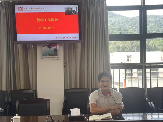 会上教务部陈国雄副部长及赵学问副院长分别对学校近期教学运行及内涵建设情况作了总体介绍。陈国雄副部长对新学期教学检查、排课、学籍管理、成绩录入及实训室等相关的工作做了部署和要求,强调了学校近期教学运行工作的重心和任务。赵学问副院长对学校内涵建设及质量工程项目建设情况进行了分析和对比,结合学校双高建设任务对标,寻差距,找问题,理思路,并对本学期的内涵建设工作做了部署。