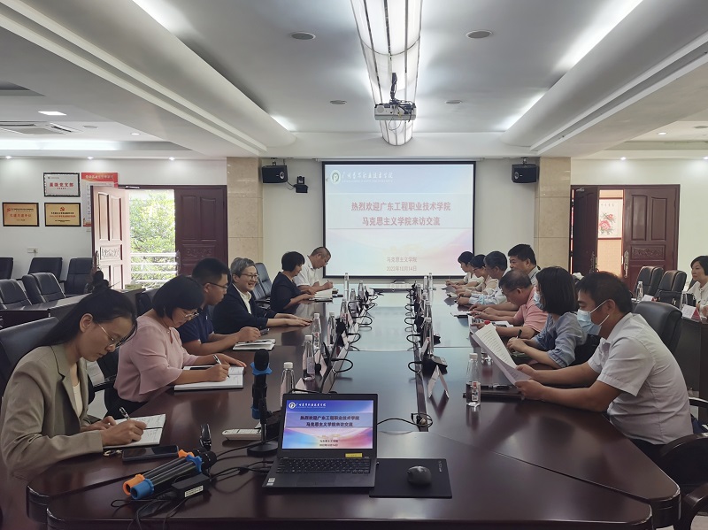 我校调研交流组先行来到广州番禺职业技术学院,受到该校党委书记林洽生、党委副书记李铭辉等领导和老师的热情接待。交流会上,方燕副书记介绍了我校党建与思想政治工作的基本情况。李铭辉副书记就基层党建、马院建设、宣传思想等工作作了详细的介绍。我校相关负责人也与番职院相应部门负责人展开了互动交流,马克思主义学院一行还与番职院马院就“大思政课”以及“概论”等多门思政课的建设开展了对口的业务交流。