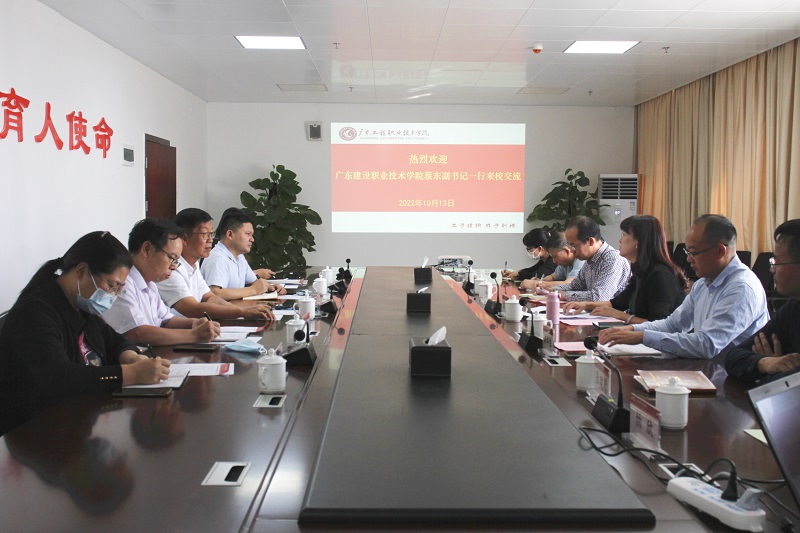 2022年10月13日下午,广东建设职业技术学院党委副书记蔡东一行5人来我校调研交流,交流会在省职教城校区办公楼411会议室举行。我校党委副书记方燕教授、马院院长郭华生、校宣传部(武装部)负责人林华开、马院党总支负责人张建德、马院副院长柏欣以及马院教研室主任邹开明、陈少娟两位老师参加交流座谈,会议由马院院长郭华生主持。