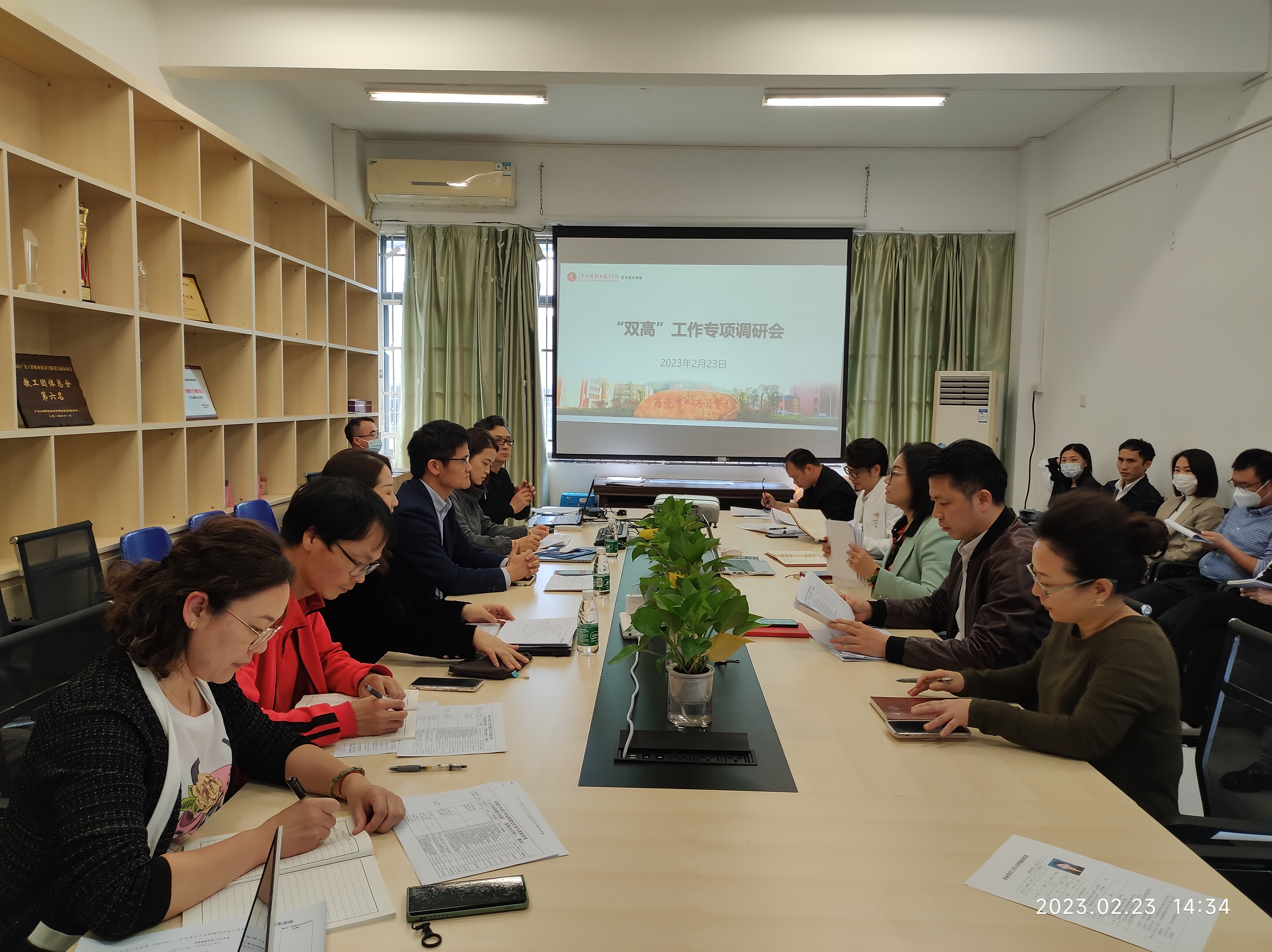 2月23日下午,学校副校长吴志敏率双高办对艺术设计学院“双高”建设工作进行专项调研指导。学院领导班子、专业群负责人、各专业主任、办公室主任及“双高”建设相关人员等出席本次调研会。院长郭希主持会议。