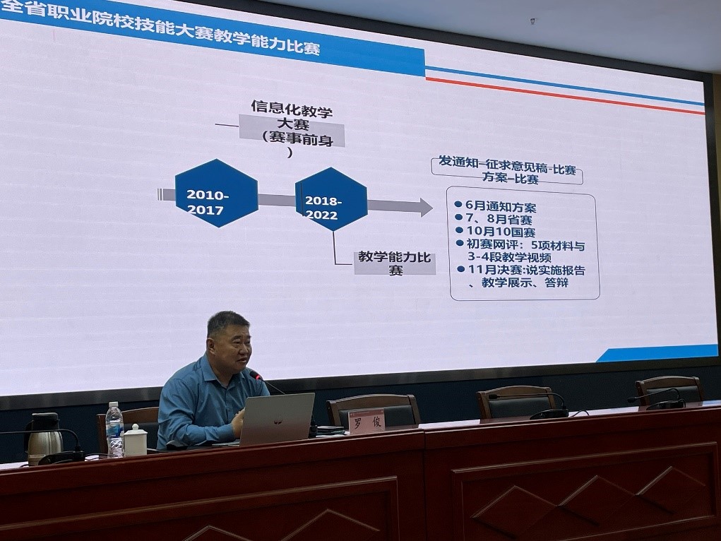 下午场蒋伯杰副校长以“教师教学能力比赛——优化教学设计”为题,为全体教师从教学能力比赛方案整体解读,比赛材料提交呈现的基本要求、比赛评审的基本要点等方面进行深入剖析,围绕教学设计、比赛选题、课程重构、人才培养方案、课程标准、教学实施报告、教案四个文档撰写等方面做了细致精彩的讲解,特别提出要加强“课程思政”建设,深挖思政元素。
