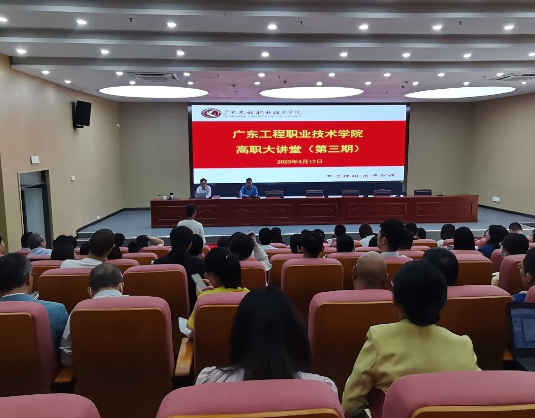 2023年4月17日,人力资源部联合双高办、教务部共同举办的“广东工程高职大讲堂”(第三期)教师教学能力大赛专题在省职教城校区办公楼一楼报告厅正式开启。为帮助全体教师准确把握教师教学能力比赛的发展趋势和参赛要求,进一步提升全体教师教学能力水平,会议邀请了具有丰富国赛参赛、评审经验的广东技术师范大学网络中心教授罗俊、广东水利电力职业技术学院副校长蒋伯杰两位专家开展了为期1天的培训。