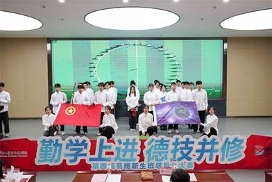 “请党放心,强国有我!”听,这是学子们笃定的青春誓言。2022级电梯工程技术A班主题表演带来了合唱、朗诵《中国少年说》,“少年智则国智,少年富则国富,少年强则国强……”铿锵有力的朗诵,时刻指引着他们向前,只争朝夕,不负韶华,心中有梦,以梦为马。2022级物联网应用技术C班融合朗诵、合唱、手势舞精彩演绎《光阴故事》、2022级环境工程技术A班合唱《黄河大合唱》、2022级智慧旅游技术应用A班原创班歌《A班是一家》,诠释着班集体以认真刻苦的学习态度,不忘初心,勤学笃行勇往直前,砥砺成才,在团结奋进中成长,在创新竞争中激发活力;在未来,他们始终以团结互助的集体感和笃学躬行的班级态度不断稳步向前,朝着未来不断迈进。展示环节中,各参赛班级精心筹备,紧扣专业特色与班级易班建设,通过树立班级目标,宣传班级形象,展现班级风采,打造班级文化,讲述班级故事,开展各种形式的主题教育,以各具特色的舞台汇报展示,向现场师生呈现了“易班线上”和“班级线下”建设班级集体风貌或同学个人勤学努力、互助友爱、文明礼敬的故事,增进同学友谊,增强班级凝聚力。