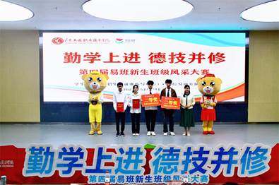 本次易班班级风采大赛共产生一等奖1名,二等奖2名,三等奖3名、优胜奖5名。据悉,本次大赛分为院级初赛和校级决赛。学校共148个新生班级,通过院级初赛选拔11个优秀班级晋级决赛,决赛由易班班级基础建设评审、现场解说和主题表演三个环节组成。通过此次比赛,将易班建设融入班团一体化建设,在提升班级凝聚力向心力、营造“文明向上”班风的同时,为学生搭建资源丰富、功能齐全、应用便捷、充满正能量的易班网络思政教育平台,强化网络思政引领功能,聚焦易班“五大工程”育人模式,不断深化易班评建体系,积极推进新媒体与网络思想政治教育的融合发展,构筑网络思政同心圆、助推学校学生工作高质量发展。