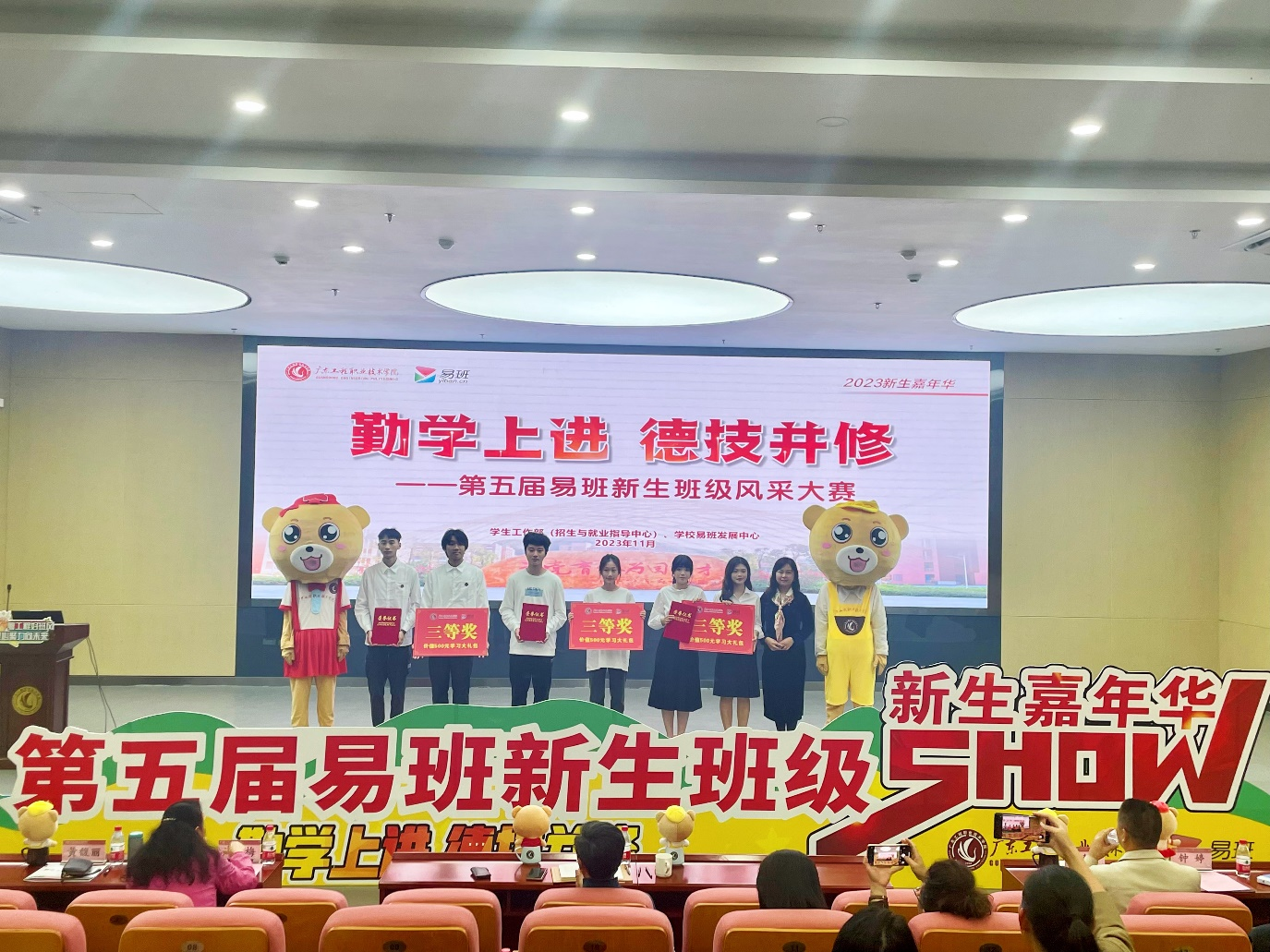 副校长张小广为荣获本届易班新生班级风采大赛冠军信息工程学院2023级数字媒体技术A班颁奖。评委为获得二等奖、三等奖、优胜奖班级颁奖。