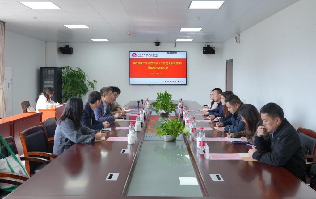 12 月 5 日上午,广东开放大学(广东理工职业学院)党政办公室副主任陈海娜、文化传播与设计学院动漫制作技术专业负责人杨雄辉一行6人到我校调研交流。学校党政办公室主任张永强、国际教育学院负责人邱志远、建筑工程学院副院长赵学问及相关教师代表参加了调研交流座谈会。