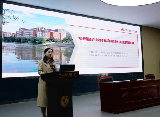 培训班邀请华南农业大学就业指导中心副主任、创新创业学院副院长曾璇,华南师范大学创业学院专职副院长侯永雄,广东职业技术学院创新创业学院院长王北一以及深圳职业技术大学创新创业学院教研室主任同婉婷等4位业界的资深专家来校授课。王北一院长以《中国国际大学生创新大赛全景透视》为主题对大赛规则、参赛要求、备赛策略和比赛趋势变化等内容进行深度剖析。曾璇院长和侯永雄院长以《首届全国大学生职规大赛赛事解读》为主题对全国大学生职规大赛的赛制、赛程、组织及参赛作品的撰写技巧等内容进行了详细讲解。同婉婷主任以《专创融合“金课”设计与制作》为主题对双创课程体系和专创融合课程建设及教学改革的方法与路径进行了深度分享。