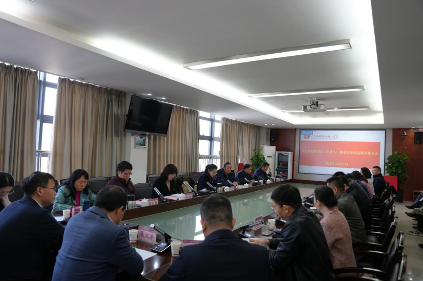 12月22日,广东工程职业技术学院在广州校区召开 2023年度学校二级党组织书记(负责人)抓基层党建现场述职会议。全体党委委员、党总支书记、二级学院党委书记(负责人)、二级学院党委副书记、专职组织员参加了会议。党委副书记方燕主持会议。