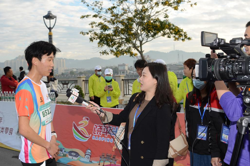 5名参赛队员备战认真,表现突出,其中王嘉昂同学在5公里欢乐跑比赛中跑出了15分16秒的好成绩,获得冠军称号。饶平县广播电视台对其进行了采访,他表示,来到与学校结对的饶平县参加比赛,看到美丽的景色,品尝到饶平美食,都让他印象深刻。他将向同学、朋友宣传饶平,让更多的人了解饶平。