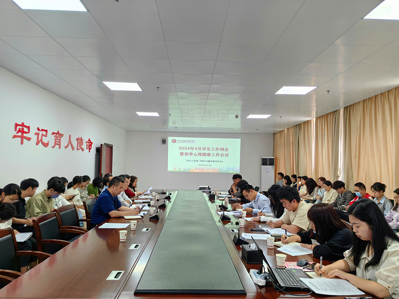 4月10日下午,学生工作部(招生与就业指导中心)在广州校区办公楼615室、清远校区办公楼509室连线召开4月份学生工作会议暨春季心理健康工作会议。学校副校长张小广出席并讲话,学生工作部(招生与就业指导中心)全体人员和各二级学院党委书记、副书记、全体辅导员参会,学生工作部部长黄馥丽主持会议。