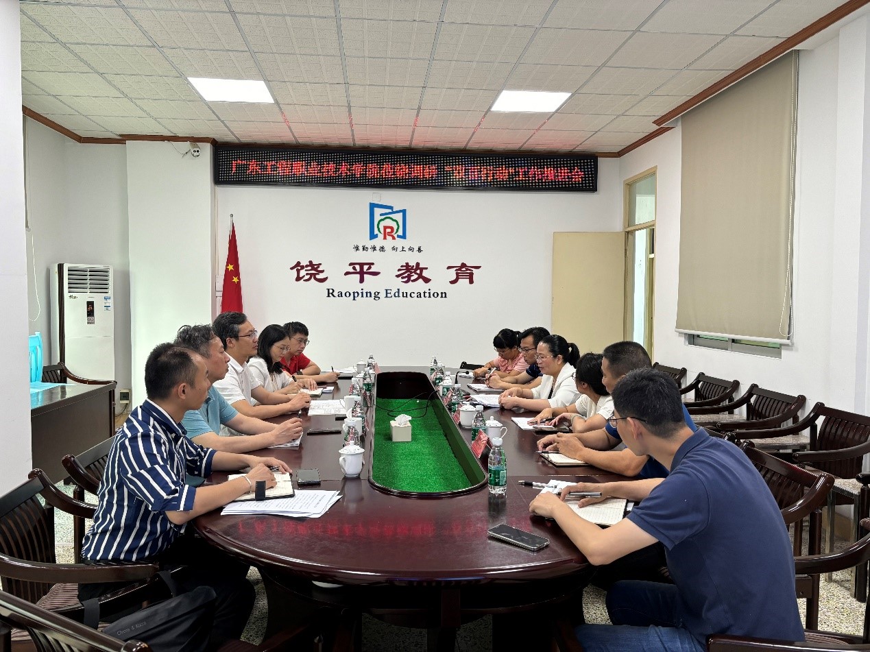 5月29日上午,调研组到贡天职校推进全口径全方位基础教育帮扶工作,会议由县教育副局长黄授慧主持,县教育局教育股、人事股、教师发展中心教研室、贡天职业技术学校及饶洋中学主要负责同志均出席了会议。会上,我校与饶平县饶洋中学签订《共建“教师专业发展联盟学校”合作协议》,学校驻饶服务队向与会领导汇报全口径全方位帮扶工作进展,贡天职校、县教师发展中心及饶洋中心分别与我校人力资源部、商务学院及现代教育技术中心等部门针对“三二分段对接”、教育教学改革、教师专业发展等交换了工作意见。