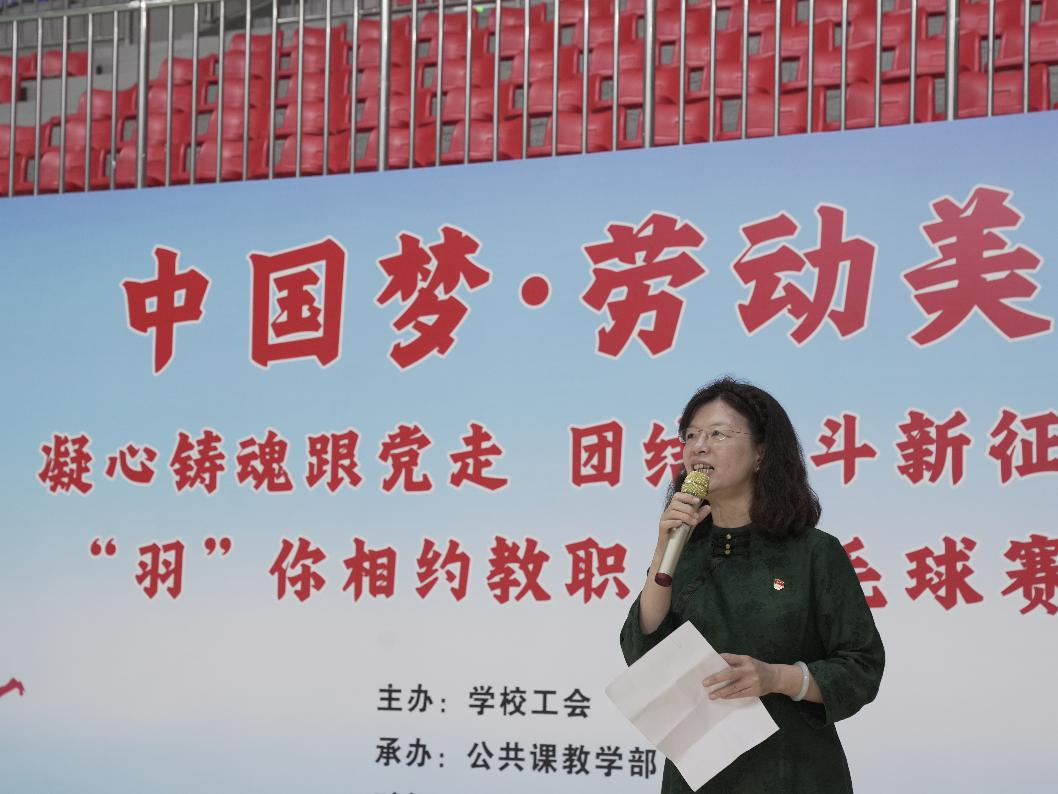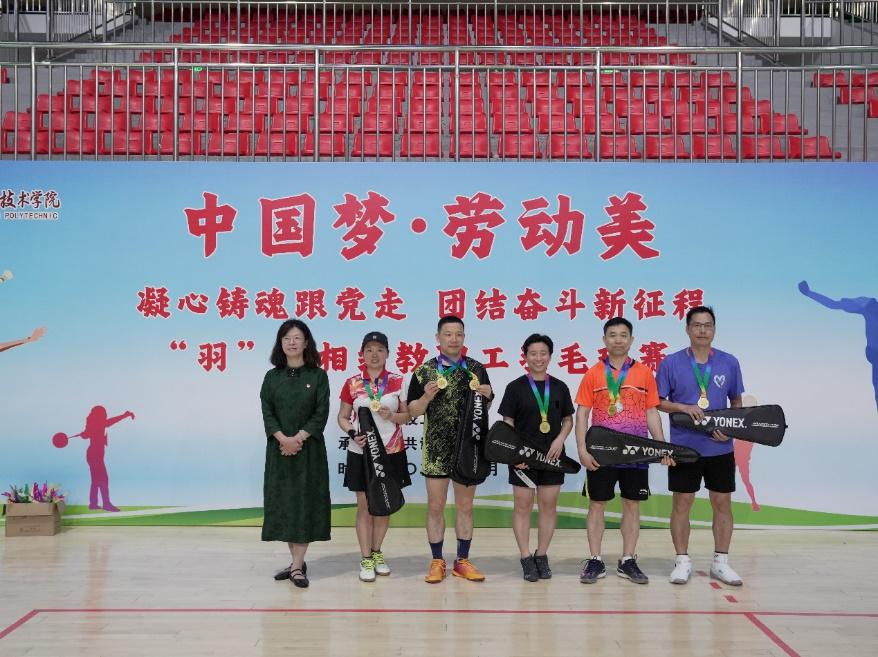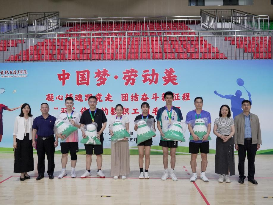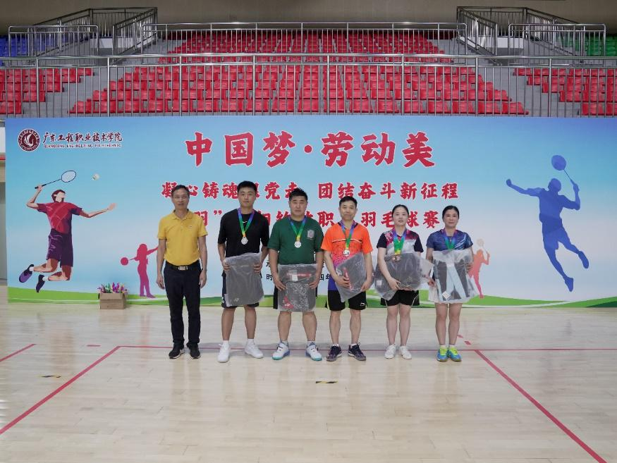 2024年5月29日到6月5日,由学校工会主办、公共课教学部协办,以“中国梦·劳动美——凝心铸魂跟党走 团结奋斗新征程”为主题的教职工羽毛球比赛在我校省职教城(清远)校区体育馆举行。我校党委副书记、工会主席方燕出席,校工会、各基层工会负责人及本次比赛的全体工作人员参加了颁奖仪式。