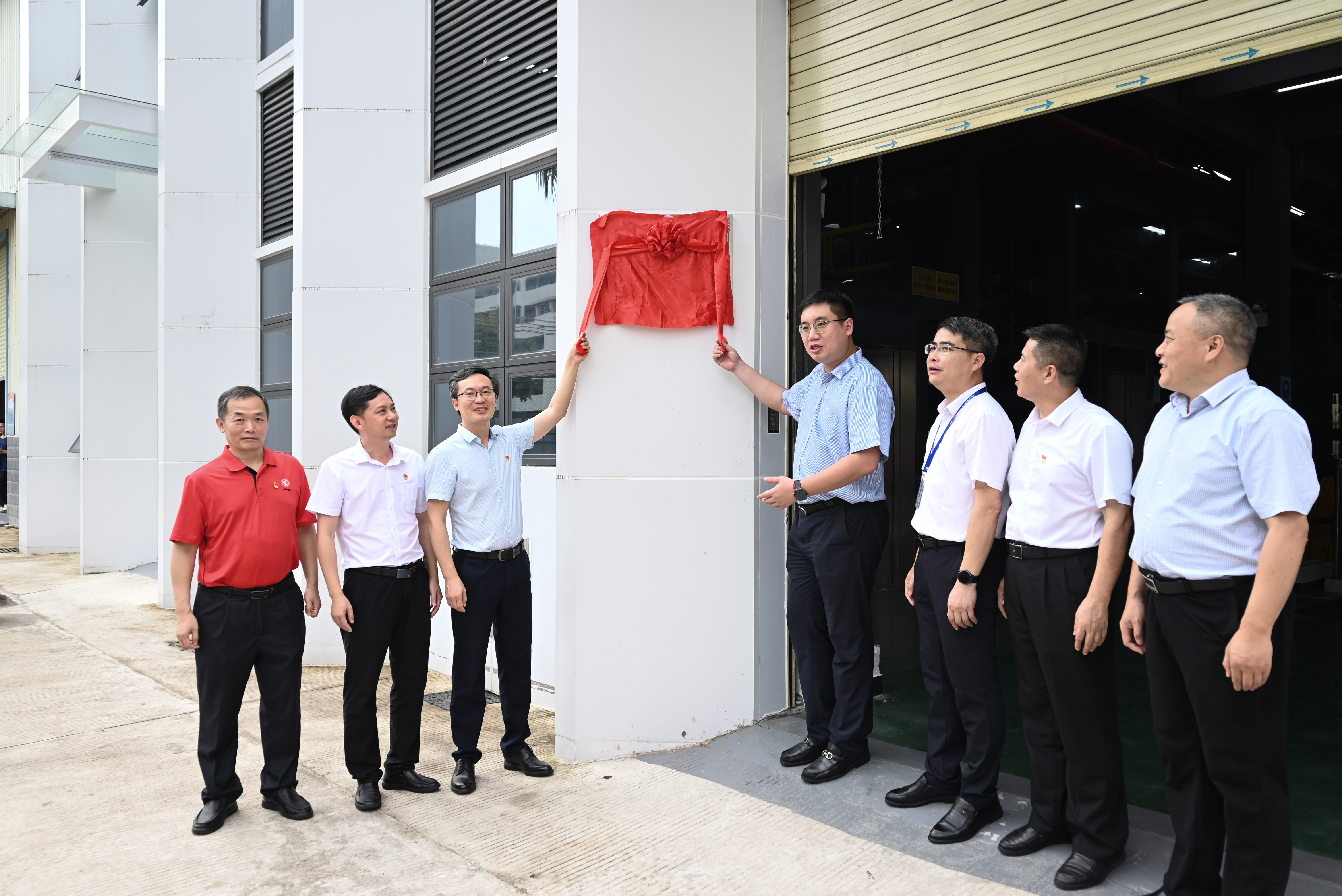 签约仪式过后,张小广副校长和清远市职业技术学校党委书记肖光辉、丁令书记共同参与了校外实践教学基地揭牌仪式。随后,丁令书记带领大家参观了上海三菱电梯产业学院。