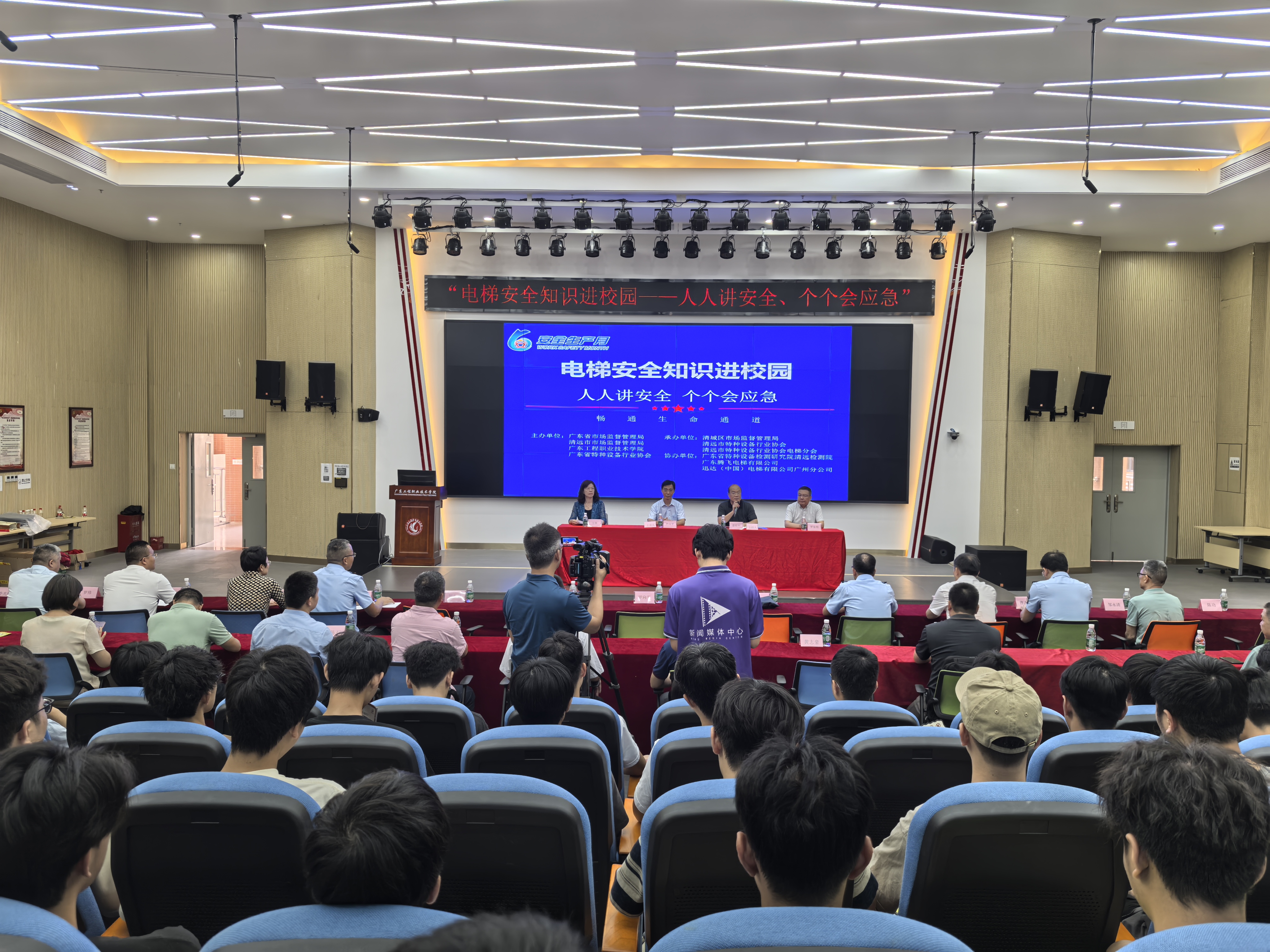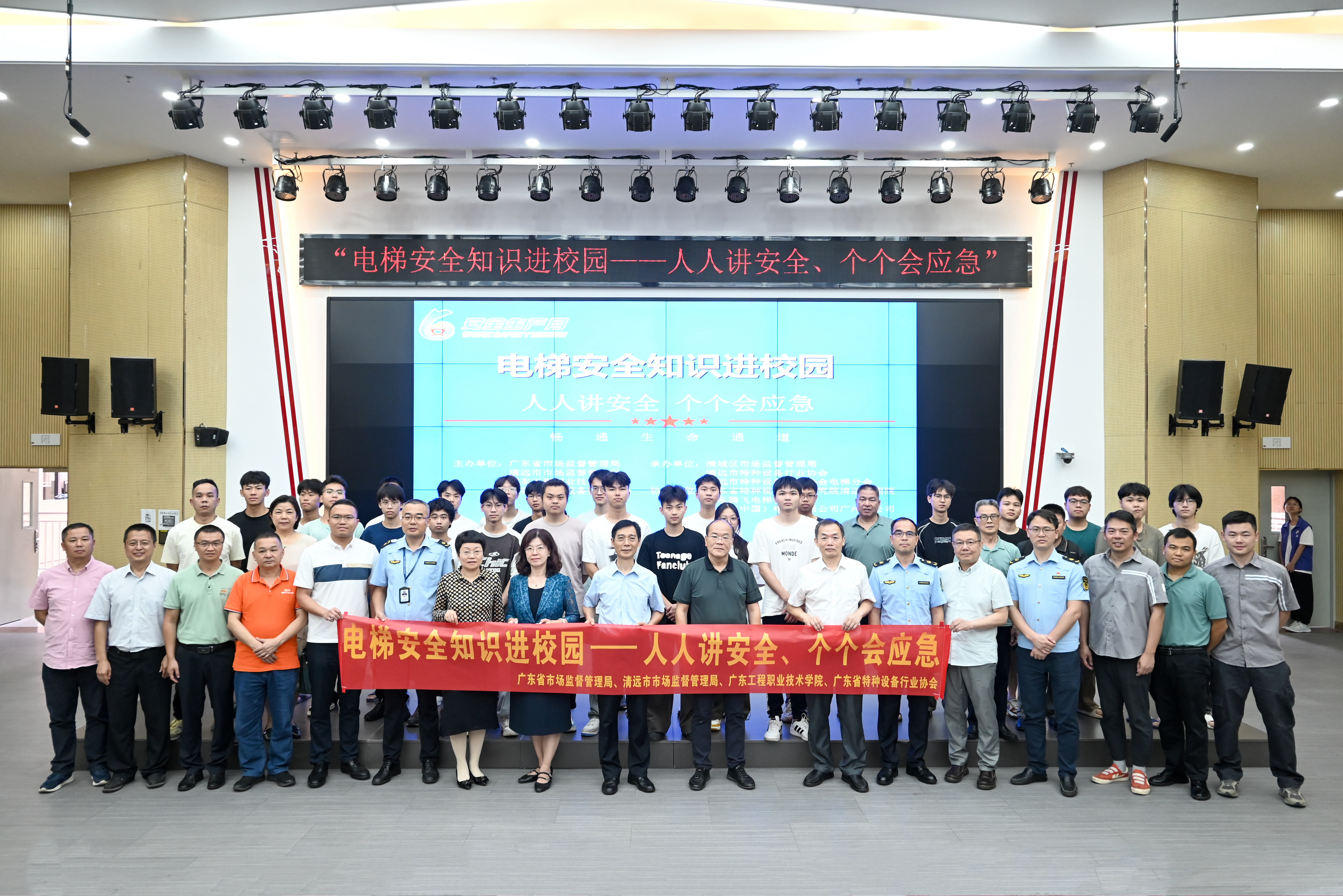 为有效普及特种设备安全知识,提升学生安全文明使用电梯意识和自我保护能力,广东省市场监督管理局联合清远市市场监督管理局、广东省特种设备行业协会等单位于6月26日赴我校开展了以“电梯安全知识进校园——人人讲安全、个个会应急”为主题的“电梯安全知识校园行”活动。广东工程职业技术学院党委副书记方燕、广东省市场监督管理局二级调研员罗向平、清远市市场监督管理局二级调研员曾庆中、广东省特种设备行业协会专职副会长罗东明等出席活动,清远市电梯行业相关单位代表、我校师生共150余人参加活动。