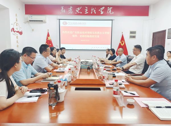 2024年7月1日下午,广东职业技术学院马克思主义学院院长曹峰一行6人来我校马克思主义学院交流学习。马克思主义学院院长郭华生、党委负责人张建德、教研室主任及教师代表参加了此次交流座谈,会议由郭华生主持。