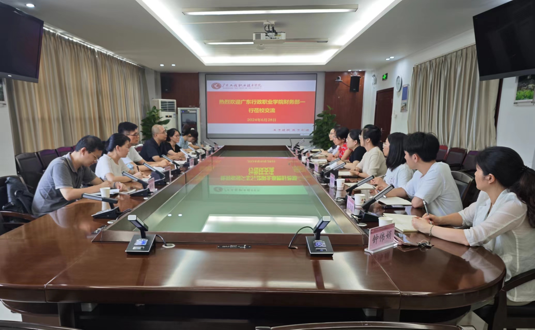 2024年6月28日下午,广东行政职业学院财务部一行到我校调研交流。财务部全体人员参加调研,学校财务部部长舒美艳热情接待并主持了交流座谈会。