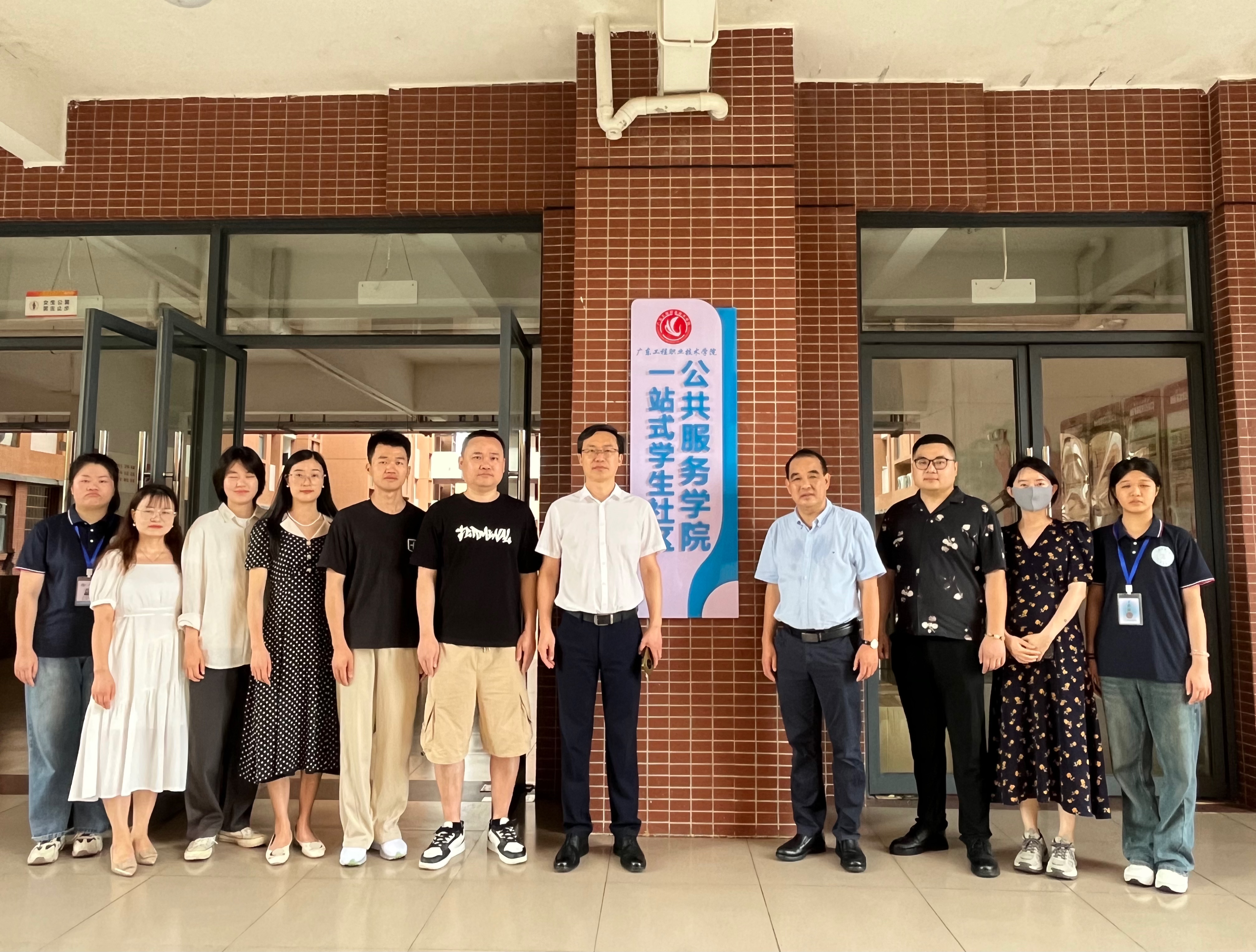 2024年7月3日,公共服务学院在清远校区学生公寓7栋举行“一站式”学生社区揭牌仪式。学校张小广副校长,以及公共服务学院辅导员和学生代表参加了此次活动。公共服务学院党委书记吴文丰主持活动仪式。
