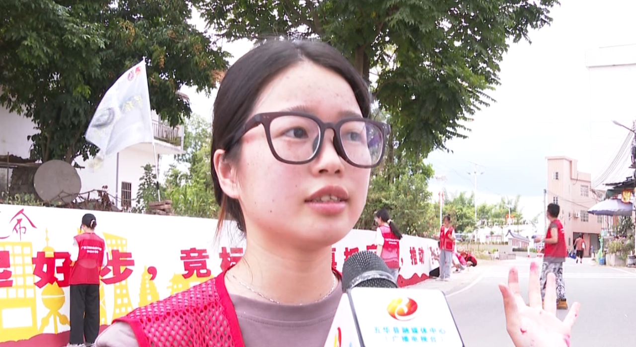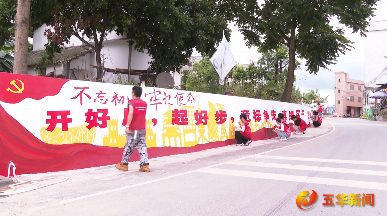 【广东工程职业技术学院艺术设计学院“智绘岭南”突击队成员 谢韩敏:我们也是希望能通过我们所学的一些技艺、技能,运用到这一方面来美化我们的乡村环境,这两天画的内容也是想结合一下我们百千万工程的内容来进行创作,以这个主题来结合乡村的一些美育文化一起来创作这幅画,同时也可以营造宣传我们百千万工程的良好氛围。】