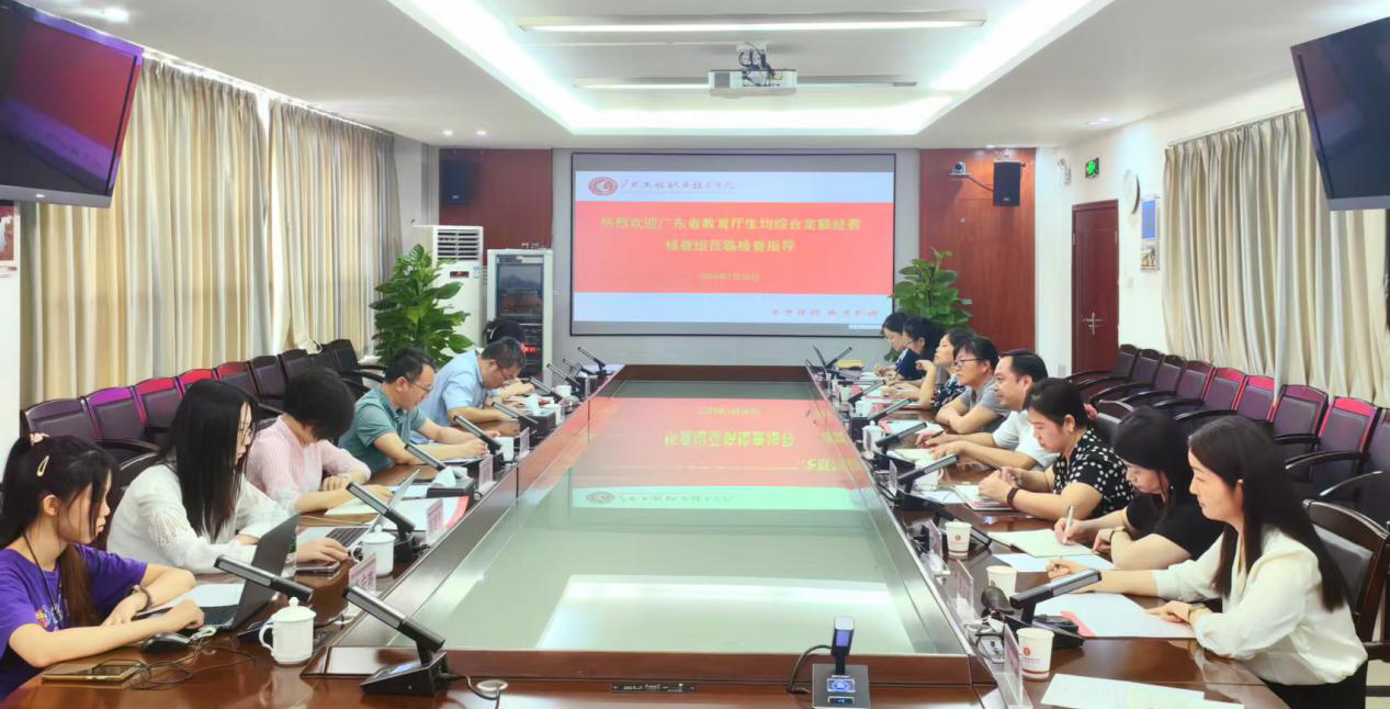 2024年7月26日,广东省教育厅基财处卢振家处长一行到我校进行生均综合定额经费核查。学校党委委员、副校长揭英荣热情接待了核查组一行,并主持核查工作会议。学生工作部、教务部、财务部有关人员参加会议。