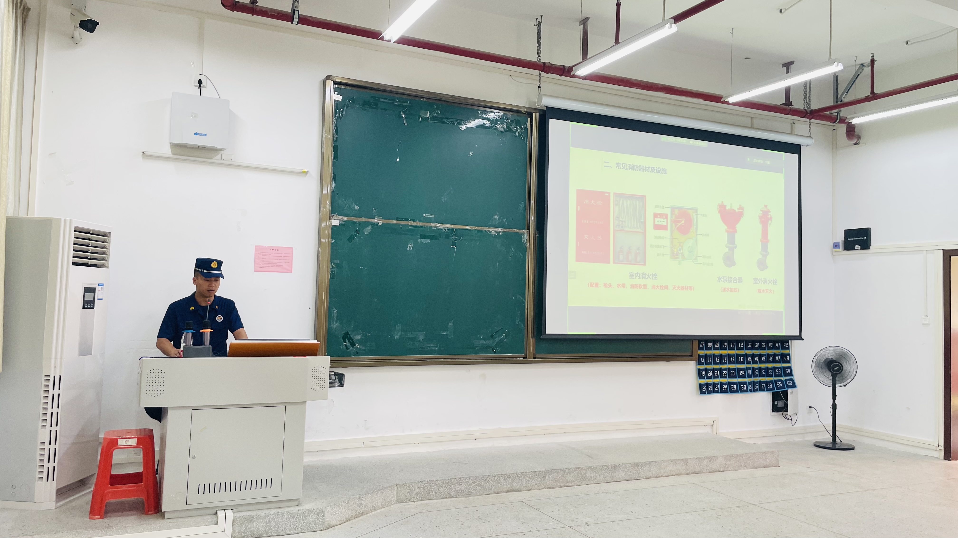 培训活动的第二个项由清远市清城区消防救援大队宣传教育培训教官李家烙开展“预防为主安全第一”主题消防安全知识讲座。内容主要包含火灾隐患的识别、消防器材及其使用的介绍、初期火灾的扑救、应急疏散及逃生技巧等。