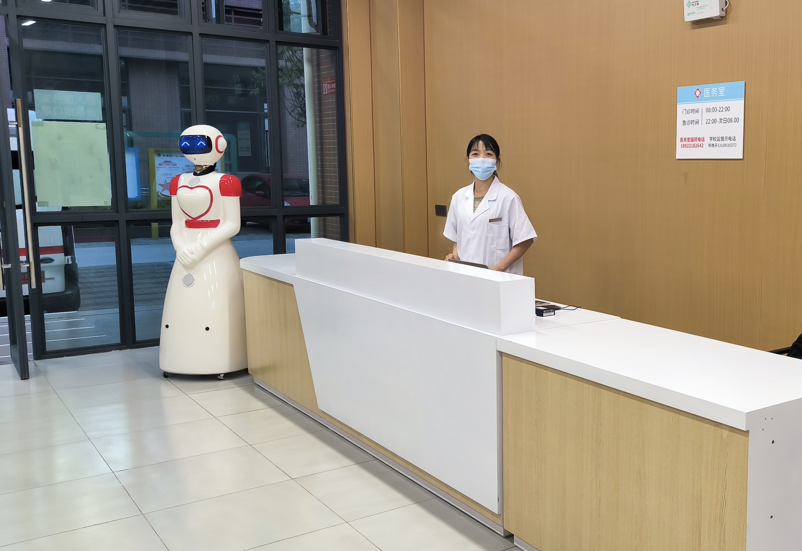在学校科学统筹谋划下,医务室就诊环境得到了显著改善,通过采用柔和的灯光与舒适的家具,科学规划诊室、药房、治疗室、观察室等空间的布局,为师生们营造一个放松、安心的就诊环境,提供更加舒适的医疗体验。医务室新引入了导诊机器人、医用多功能观察病床、便携式AED除颤仪、便携式24导联心电图机、压缩式电子雾化机、远红外线理疗灯等医疗设备和信息化系统,导诊机器人的引入,为师生提供科室指引、就诊流程引导等咨询服务,帮助完成就医过程,利用人工智能技术提高医疗服务效率和改善就医体验。本学期开始,清远校区医务室实行24小时值班制,增设理疗、雾化等多项专业诊疗项目,确保每一位师生的就诊与治疗都能得到及时有效的支持提升医疗服务综合能力,满足师生多元化需求。