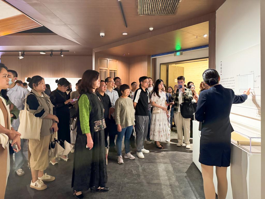 中国国家版本馆广州分馆(文沁阁)是中国国家版本馆三个地方分馆之一,馆藏重点历史文献、岭南文化、侨批侨刊、票据票证、音响唱片、科学技术等各类特色版本,是一座传承悠久文明、赓续中华文脉、展示岭南文化的“基因库”。展览现场,在讲解员的引导下,老师们依次参观了各个主题展厅。在“千秋写印、华夏有章——中华版本发展概览”展厅中,大家领略了中华版本从甲骨文到现代出版物的演变历史,深刻感受到了中华民族深厚的文化底蕴;在“博采琳琅——广州国家版本馆入藏捐赠精品展”展厅中,大家透过各界人士捐赠的珍贵文物,感受到中华儿女对赓续中华文明的自觉与担当;在“流淌的歌声 奋进的中国——中华人民共和国优秀歌曲展”展厅中,一首首镌刻着时代烙印的歌曲讲述了中国共产党领导人民砥砺奋进的光辉历程,大家感受到新中国成立75年来的沧桑巨变。参观过程中,老师们不时驻足仔细观看、认真品味,与讲解员积极互动,深入探讨历史文物背后的文化内涵。