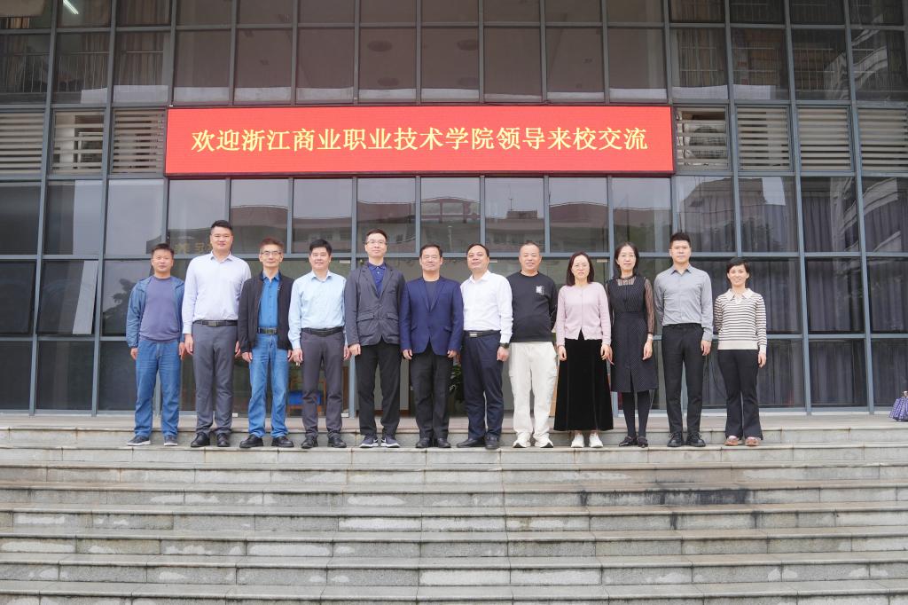 11月19日下午,浙江商业职业技术学院副校长何荣华一行来校交流,学校党委委员、副校长揭英荣热情接待来访的客人。