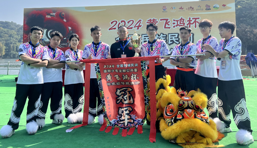 2024年12月6日至12月8日,“黄飞鸿”杯全国民族民间龙狮公开赛在佛山南海西樵山举行,本次比赛汇聚了国内9个组别的49支队伍,共392名运动员参赛。在校团委的指导和广州校区各二级学院的大力支持下,我校龙狮协会由来自艺术设计学院、信息工程学院、商务学院的8名队员参加大学男子组传统南狮的比赛。