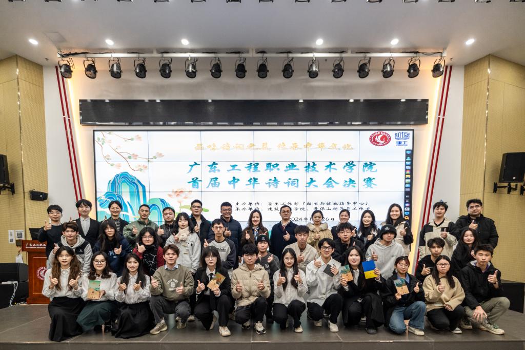 为弘扬中华优秀传统文化,激发学生对诗词的热爱,丰富校园文化生活,2024年12月26日,建筑工程学院承办的广东工程职业技术学院首届中华诗词大会决赛在省职教城校区Q1-228成功举行。来自各学院的诗词爱好者齐聚一堂,共同感受中华诗词的魅力。学生工作部(招生与就业指导中心)副部长原慧琴、查宇驰,财经学院党委副书记罗汉红,人工智能学院党委副书记李家标,晋保山辅导员工作室成员等教师代表参加了此次活动。