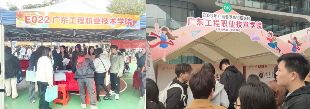 学校应邀参加在广州市、江门市、广州市纺织服装职业学校举办的春季招生现场咨询会。在各咨询会现场,我校展位前始终人头攒动。老师们围绕考生关心的热点问题,从专业特色、课程设置、师资力量、升学就业前景等维度展开一对一解答。针对春季高考考生特点,重点介绍了我校“双高计划”建设成果、产教融合培养模式以及近年来在技能大赛、创新创业等领域取得的突出成绩。多名资深专业老师结合行业发展趋势,为考生推荐匹配度高的专业方向;招生老师则通过大数据分析,为不同分数段考生提供精准志愿填报建议,热情为考生、家长答疑解惑。