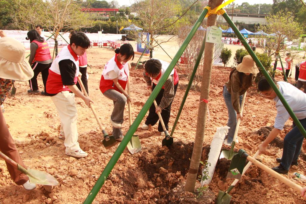 为深入学习贯彻习近平生态文明思想,全面贯彻落实省委省政府、市委市政府深入实施“百县千镇万村高质量发展工程”和推进绿美广东建设决策部署,响应“志愿全运,绿色广州”的号召,3月14日,我校志愿者协助共青团天河区委员会、天河区住建园林局开展的“志愿全运,绿美天河”2025年天河植绿护绿行动顺利进行。