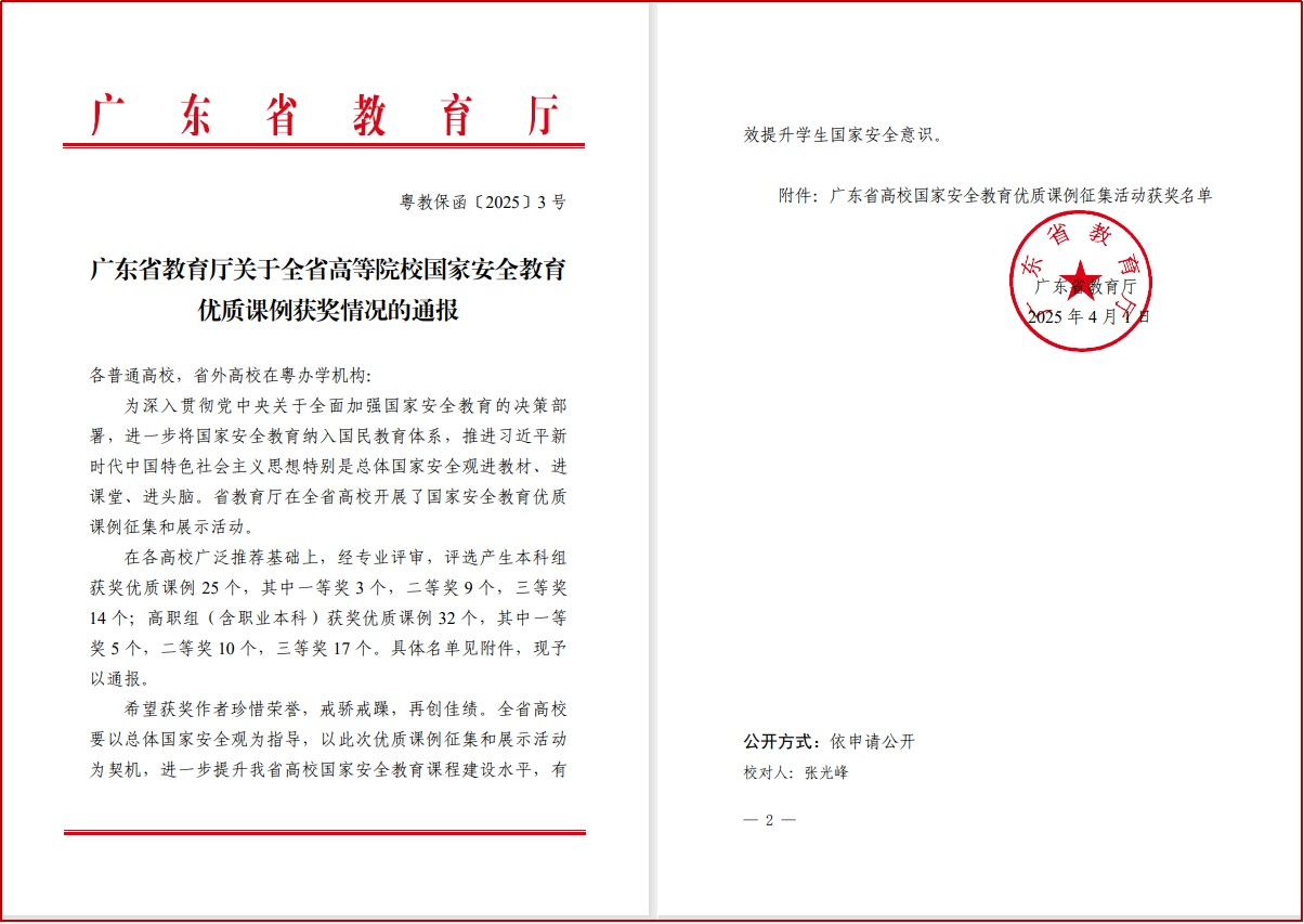为深入推进总体国家安全观进教材、进课堂、进头脑,加强“国家安全教育”课程的建设。近日,我校马克思主义学院积极选派优秀青年教师参加省教育厅组织的“国家安全教育优质课例”征集活动,李娜、李嘉琛、李艳三位老师荣获高职组优质课例三等奖。