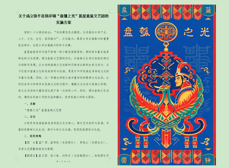 我校拟草的畲族文艺团实施方案及设计的团旗