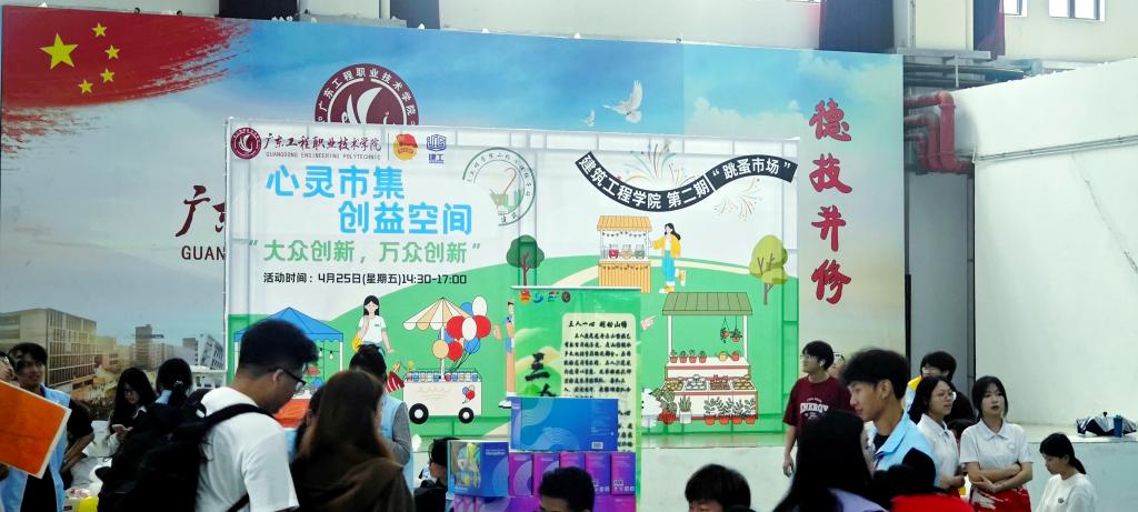 4月25日下午,省职教城校区学生活动中心内人头攒动、袂云汗雨,“心灵市集·创益空间”建筑工程学院跳蚤市场活动正在此地如火如荼地进行。本次活动由建筑工程学院主办,来自不同学院、不同专业的学生团队组成14家各具特色的摊位依次排开,琳琅满目的生活日用品、手作文创、美妆好物与二手书籍填满展厅,近千名师生穿梭其间,在“线下淘宝”中感受青春创意带来的独特魅力。