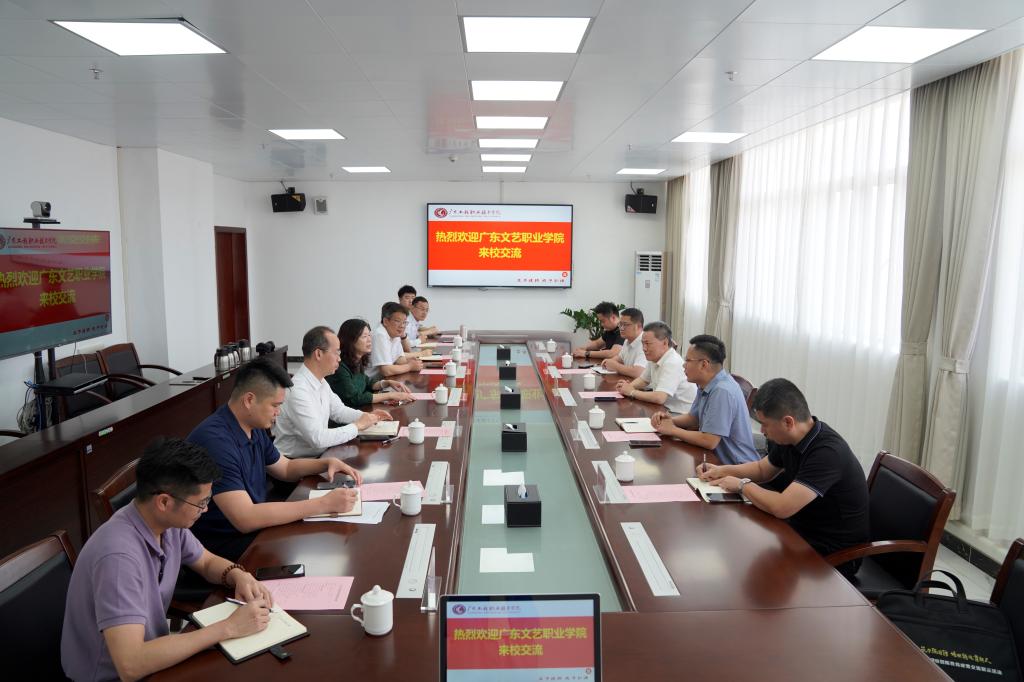 4月29日下午,广东文艺职业学院党委副书记邱广林一行来我校交流。学校党委副书记方燕、副校长张永强出席了会议,宣传部(武装部)部长林华开、学生工作部(招生与就业指导中心)部长吴华长、总务后勤部(保卫部)部长廖彦云、宣传部(武装部)副部长查宇驰等同志参加了会议,会议由方燕副书记主持。