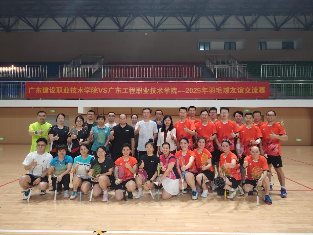 为增进校际交流合作,提升教职工体育竞技水平,5月13日,我校与广东建设职业技术学院(以下简称“建设职院”)在学校体育馆以球会友,开展羽毛球友谊交流赛。本次活动作为双方参加2025年广东省教科文卫工会羽毛球赛事的热身赛,建设职院由党委委员、纪委书记王刚带队,我校由党委委员、副校长张小广带队,两校工会专职副主席及部分参赛队员参赛,以球会友、共促提升。