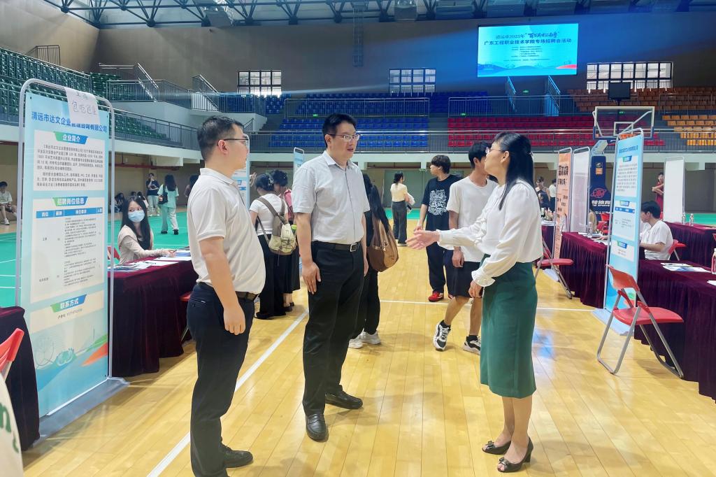 为进一步推进“百万英才汇南粤行动计划”,推动毕业生留清创业就业,5月21日,我校联合清远市人力资源和社会保障局举办“清远市2025年‘百万英才汇南粤’广东工程职业技术学院专场招聘会活动”,聚焦重点行业人才需求,为毕业生搭建起广阔的职业发展平台。张永强副校长和清远市人才和公共就业服务中心副主任冯丽瑜一行莅临现场指导交流。
