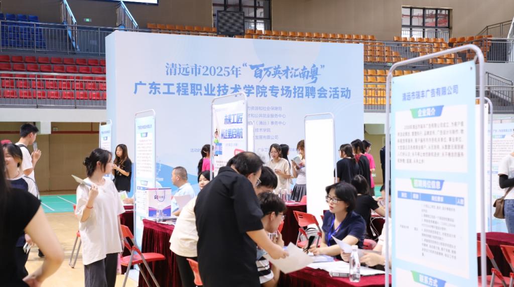 本次招聘活动由清远市人力资源和社会保障局主办,清远市人才和公共就业服务中心、广东省职教城(清远)事务中心、广东工程职业技术学院共同承办,广东融湾人才发展有限公司协办。邀请中国联合网络通信有限公司清远市分公司、中国平安财产保险股份有限公司清远中心支公司高新支公司、清远市广清电商产业发展有限公司等36家优质企业参会,特别设置数字信息技术、机电工程、综合管理三大行业专区,提供新媒体运营、电商主播、数控编程、数据标注员等累计546个就业岗位,吸引众多省职教城高校学子到场应聘。