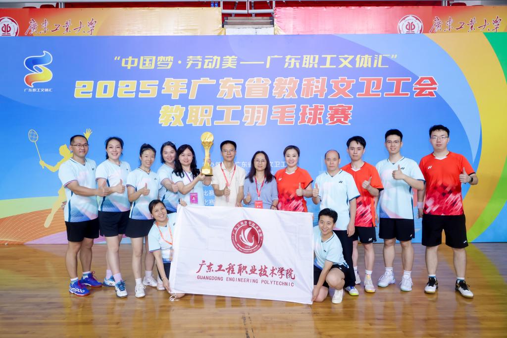 2025年6月7日至8日,广东省教科文卫工会教职工羽毛球赛总决赛在广东工业大学举行。本次赛事汇聚了全省教科文卫系统五个片区(本科一、本科二、高职中学、高职中专、附属医院)的前三强及主办方,共16支精英队伍展开巅峰对决。我校教职工在强手如林的赛场奋勇拼搏,捷报频传。