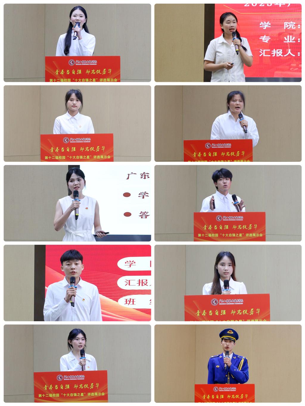 青春当自强,励志绽芳华。6月12日下午,学校第十二届校园“十大自强之星”评选展示会在清远校区报告厅举行。学校党委委员、副校长张永强出席活动并讲话,各二级学院党委书记、副书记,助学辅导员老师和学生代表参加现场活动。学生工作部(招生与就业指导中心)部长吴华长、团委副书记黄澄、创新创业学院副院长何杰文等5位职能部门中层干部担任评委。