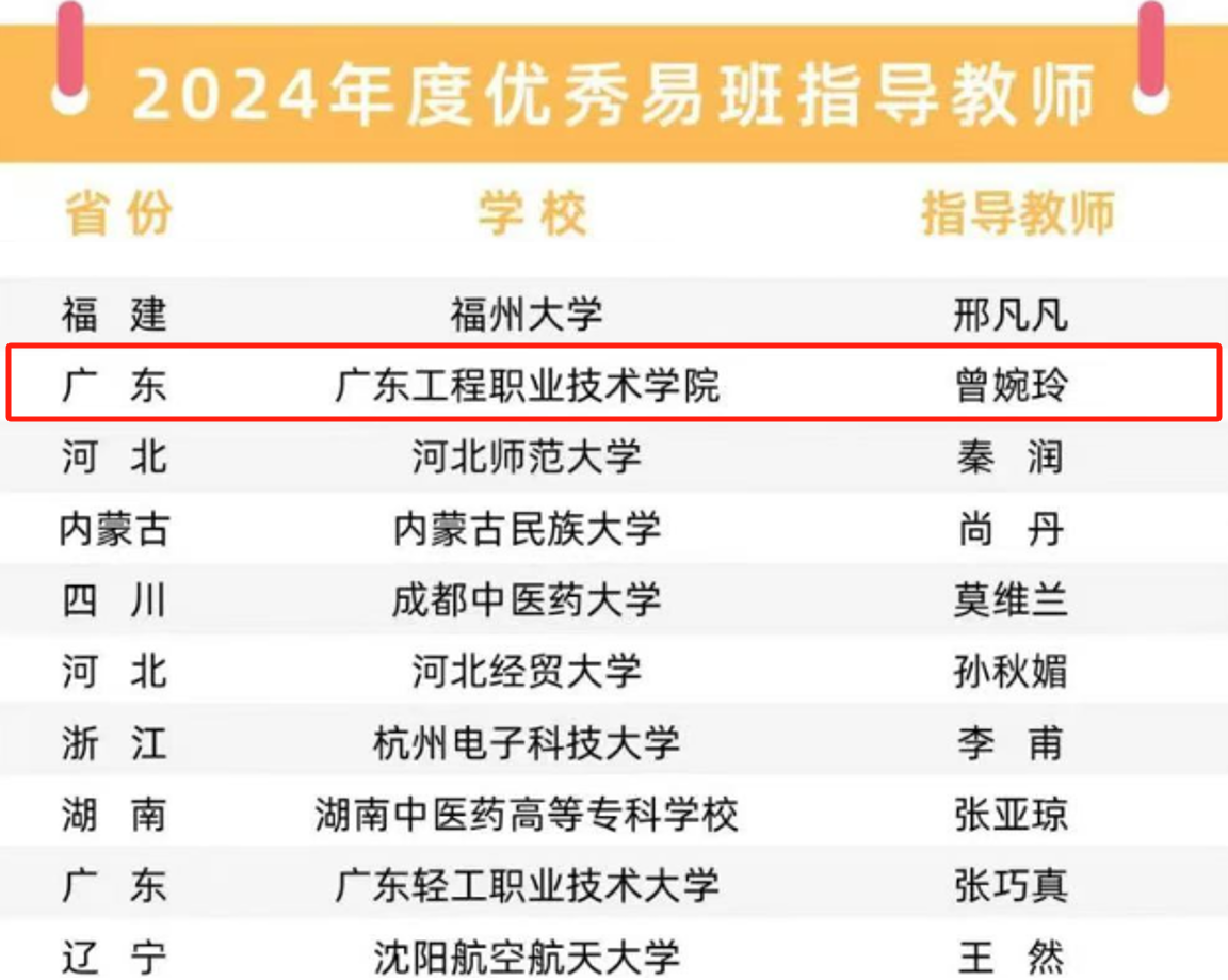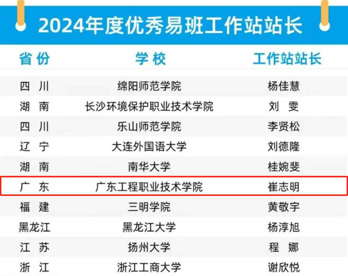 本次评选竞争激烈,教育部易班发展中心共征集到来自全国28个省(区、市)及新疆生产建设兵团377所高校的1029份申报材料。经过专家评审,结合各高校全年易班活跃度指数(双指数)及活动参与度综合考量,我校曾婉玲老师、崔志明同学脱颖而出,分别被评为“2024年度优秀易班指导老师”(全国92名,广东省仅8名)和“2024年度优秀易班工作站站长”(全国89名,广东省仅8名)。