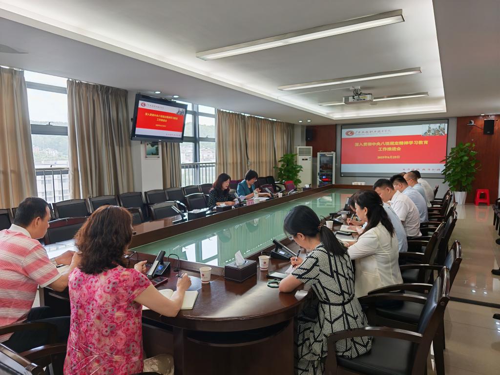 6月25日上午,学校通过视频连线方式在广州校区办公楼615室和省职教城校区办公楼509室召开深入贯彻中央八项规定精神学习教育工作推进会。党委副书记方燕,各二级党委书记、党支部书记,学校学习教育工作专班成员参加会议。会议由组织统战部部长佘细花主持。
