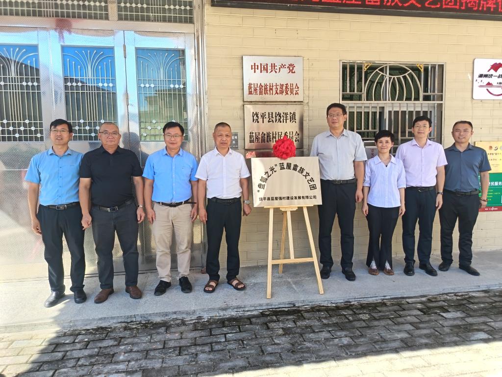 在饶洋镇蓝屋畲族村,调研组为“盘瓠之光”蓝屋畲族文艺团举行挂牌仪式。张永强副校长与饶平县饶洋镇镇长张令辉、驻镇扶村工作队队长陈静进行深入交流,了解畲族文艺团活动情况和畲族研学路线开展情况,实地查看了进村道路基底硬化工程进展,调研了解仙女峯茶企业生产经营情况。