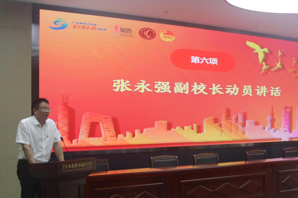 6月30日,学校2025年“百千万工程”突击队出征仪式在省职教城报告厅举行。学校副校长张永强出席出征仪式,各二级学院党委副书记、团学指导老师,校团委全体老师和“百千万工程”突击队师生代表参加仪式,仪式由校团委副书记黄澄主持。