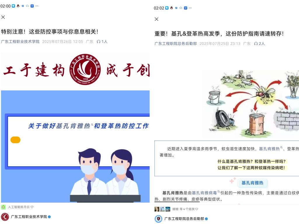 会后,相关职能部门充分利用公众号、工作群、班级群等平台,广泛开展暑假期间学生交通安全、预防溺水及基孔肯雅热疫情防控的宣传教育,深入普及交通安全常识、防溺水“六不”原则及蚊媒传染病防控知识。积极组织医护人员、物业保洁人员参加广东省后勤协会举办的基孔肯雅热疫情防控工作公益直播课学习,提升防控能力。同时,督促物业公司开展校园环境卫生保洁和“清积水,灭蚊虫”行动,对教室、食堂、宿舍、绿化带等重点区域实施全覆盖消杀,从源头上切断蚊媒传播途径。