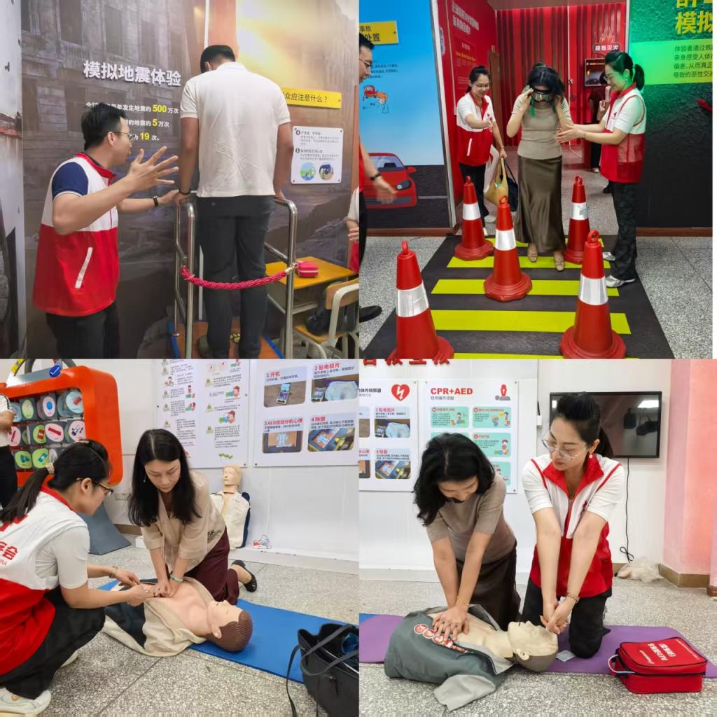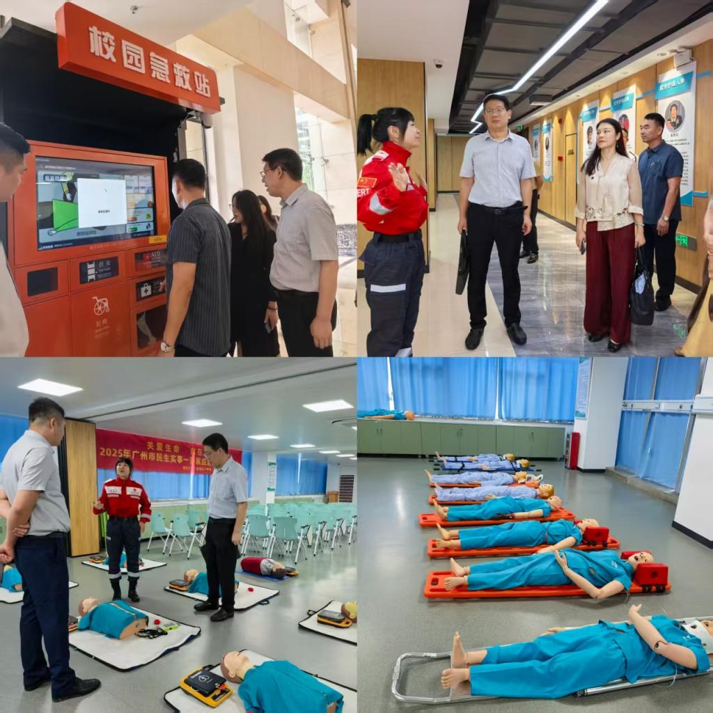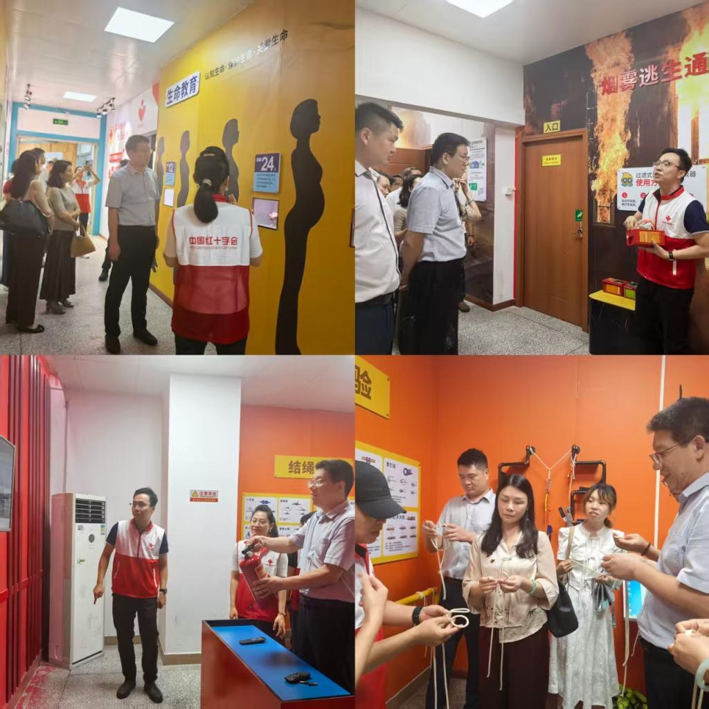 随后,到访中国红十字会广州备灾救灾中心,中心主任黄沛龙介绍了中心在救灾物资储备、现代化仓储管理、快速响应机制建设以及面向社会开展的各类应急救护培训项目,同时,对我校的急救教育基地建设提出指导建议。在生命健康安全体验馆,听取了红十字运动的起源和七项基本原则的介绍,并通过沉浸式体验和互动模拟项目,直观学习了应对突发事件、自然灾害、交通事故及日常急症的正确处置方法,掌握了心肺复苏的自救互救技能。这种寓教于乐的科普教育形式,为我校今后开展面向广大师生的生命安全教育提供了宝贵经验。