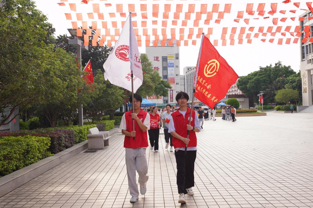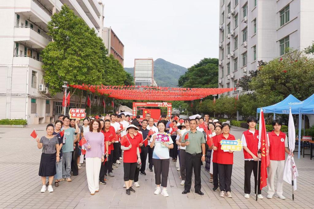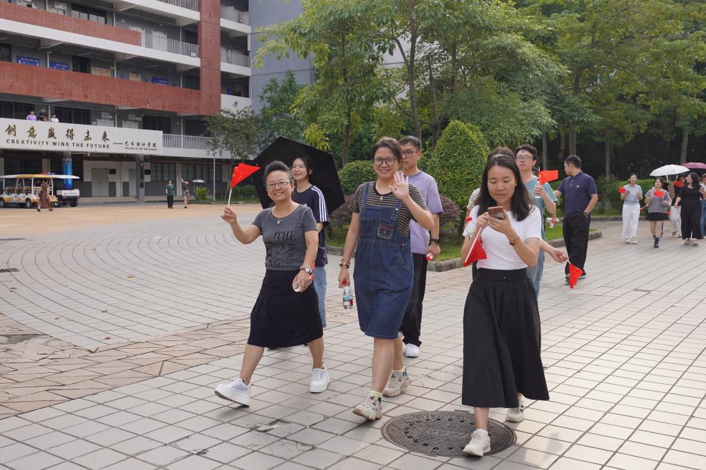9月29日下午,在中华人民共和国成立76周年和中秋佳节即将来临之际,学校组织的“喜迎国庆 欢度中秋”教职工校园健步走活动在两校区同步开展。校工会主席方燕与近三百名教职工齐聚校园,以健康活力的方式共庆双节。